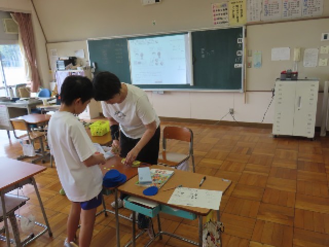 9月9日(火)わかくさ学級算数 公開日 2025/09/09 更新日 2025/09/09 できごと(2025) わかくさ学級の5年生が、算数の時間にわり算の学習に取り組んでいました。具体物を使いながら、視覚的にもわかりやすく理解を深めていました。