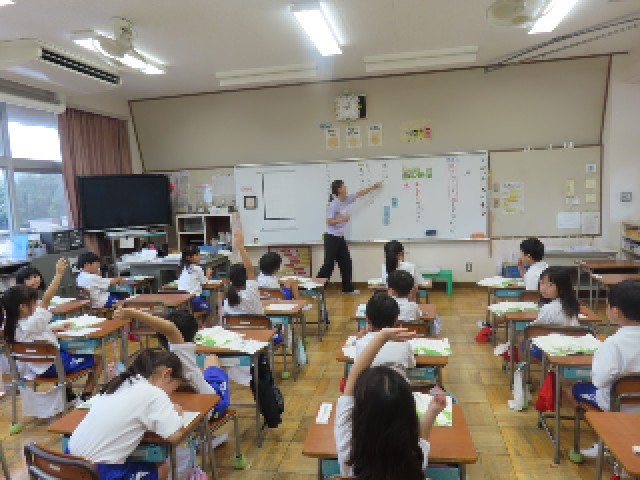 1年生は、国語の時間に物語文「やくそく」を読んでいます。今日はお話の中に出てくる登場人物をみんなで確認し、それぞれがどんな人かを考えながら学習を進めていました。