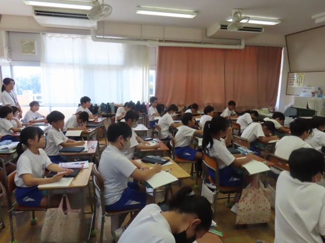 5年生の理科では、「台風と天気の変化」の学習が始まりました。今日は、実際の雲の画像を見ながら、台風の動きや天気の変化についてどんなことがわかるのか、この単元の課題を考えていました。