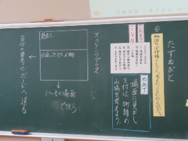 5年生の国語では、物語文「たずねびと」の学習に取り組んでいます。この単元では、物語の全体の流れを想像しながら読み進め、自分の考えを友だちと伝え合うことを目指しています。今日は、登場人物の気持ちや場面の様子をもとに、それぞれの場面にふさわしい見出しを考える活動を行いました。子どもたちは登場人物の心情を想像しながら、ぴったりの言葉を選ぼうと真剣に取り組んでいました。