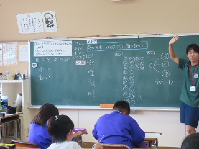6年生は、算数で「場合の数」の学習に取り組んでいます。今日は、「4人の中から班長と副班長を選ぶ方法は何通りあるか」について、順序や組み合わせを考えながら学習していました。いろいろな考え方に気づきながら、意欲的に取り組んでいました。