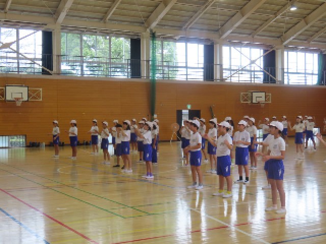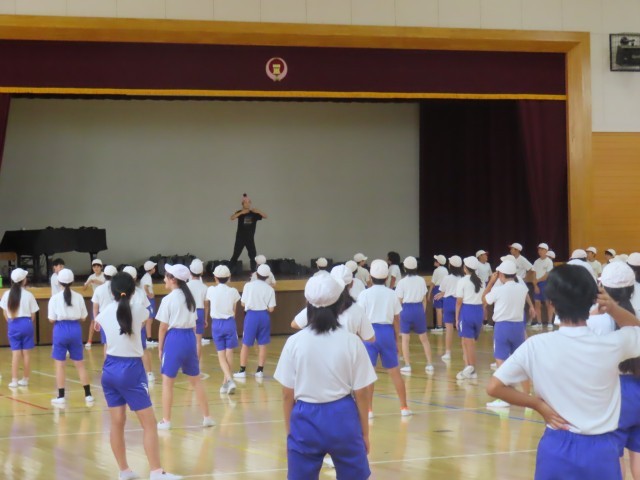 本日、6年生が体育館で運動会の練習を行いました。今回は、ボランティアの方を講師としてお招きし、ダンスの振り付けを教えていただきました。子どもたちは音楽に合わせて楽しそうに体を動かし、笑顔あふれる練習となりました。