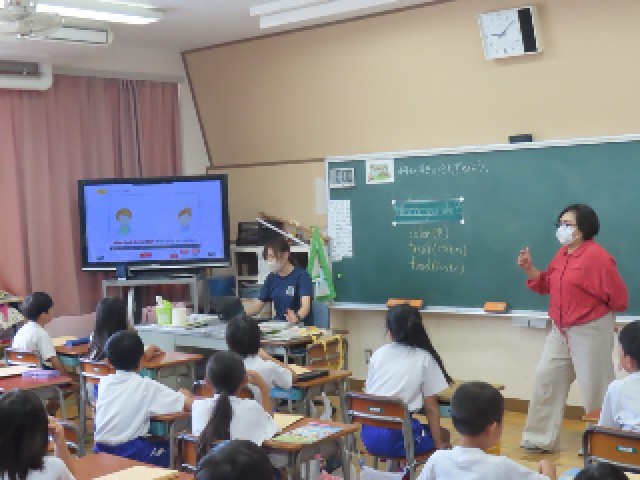 本日、3年生が外国語活動の学習に取り組みました。今回は「なにがすきかたずねよう」をめあてに、相手に好きなものをたずねる英語表現を学んでいました。