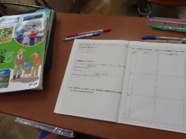5年生は、社会科の新しい単元「これからの食料生産とわたしたち」の学習に入りました。今日は、日本の食料事情について資料をもとに学び、自分たちで学習の見通しとなる学習問題を考えました。