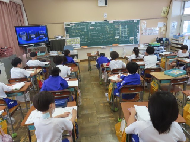 3年生は、算数の授業で「10,000より大きい数」の学習に取り組んでいます。今日は、10,000より大きい数のしくみについて学び、位ごとの数字の意味に注目しながら学習を進めていました。