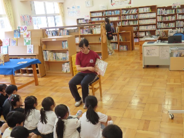 1年生は、今日の国語の時間に図書室で読書を行いました。時間の終わりには担任による読み聞かせがあり、子どもたちはお話の世界に引き込まれるように、興味深く聞き入っていました。