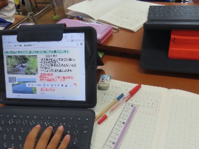 5年生の理科では、「流れる水のはたらき」の学習が始まりました。今日は、神流川の2カ所の写真を見比べながら、地形や様子の違いに気づき、これからの学習につながる課題を見つけていました。