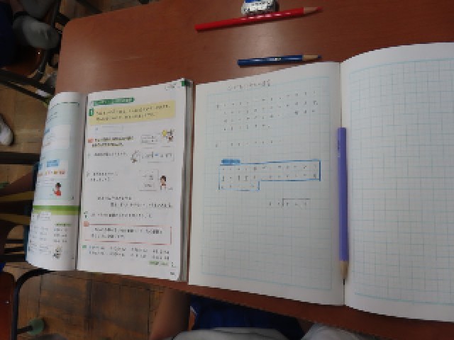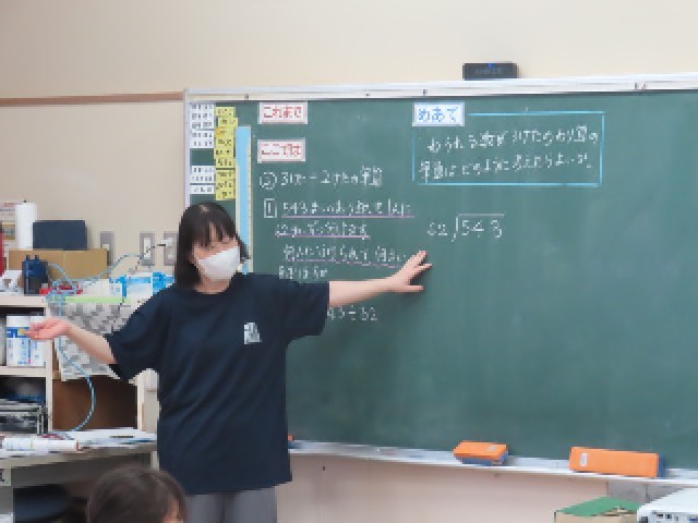 4年生の算数では、「2けたでわるわり算」の学習を進めています。今日は、わられる数が3桁になる計算に挑戦しました。だんだんと扱う数が大きくなり、難しさも増してきましたが、みんな集中して取り組んでいました。