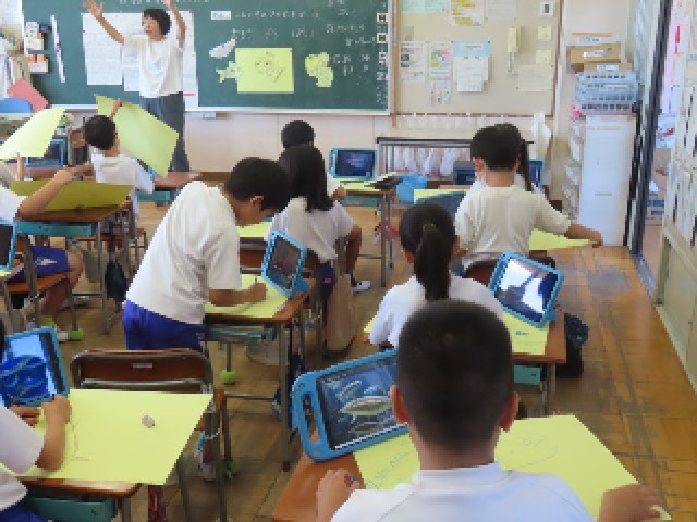 2年生は「絵をかく会」に向けて、絵画の制作に入りました。今回のテーマは「にじいろのさかなを描こう」です。子どもたちは、それぞれの発想を生かして、思い思いで個性的なさかなを楽しそうに描いていました。