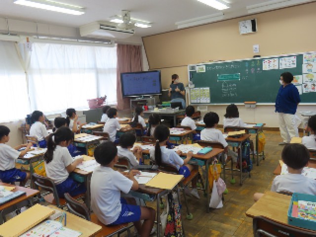 3年生が外国語活動の授業に取り組んでいました。今日は「友達の好きなものを予想しよう」をめあてに、友達に好きなものをたずねる英語の表現を学習しました。楽しそうにペアで会話をしながら、英語に親しんでいる様子が見られました。