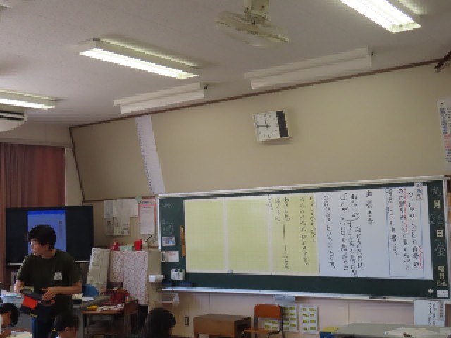 2年生の国語では、説明文「どうぶつ園のじゅうい」の学習に取り組んでいます。今日は、「筆者の仕事と自分の身のまわりのことを比べて、考えたことを書こう」というめあてのもと、じっくりと考えながら学習を進めていました。