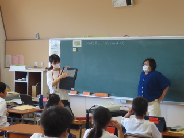 4年生が外国語活動の学習に取り組んでいました。今日はタブレットで自分で選んだ文房具の英語表現を学習していました。児童たちは、楽しみながら英語に親しんでいました。