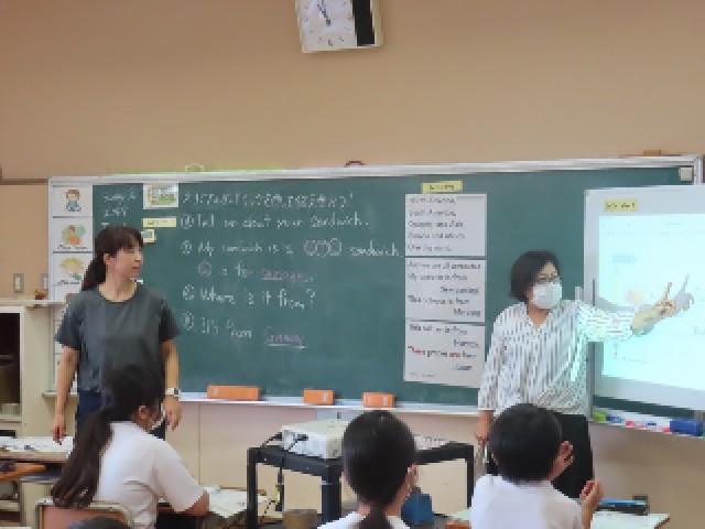 6年生の外国語では、「オリジナルサンドイッチを作って伝え合おう」というめあてのもと、サンドイッチに使う具材やその産地について、英語での表現を学びながら楽しく伝え合っていました。