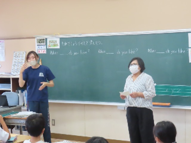 3年生の外国語活動では、「だれでしょうクイズを楽しもう」というめあてのもと、学習に取り組んでいました。まずはクイズを作るために、友達に好きなものをたずねる英語表現を学びました。子どもたちは、楽しみながら英語でのやりとりに挑戦し、クイズ作りへの意欲を高めていました。