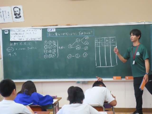 6年生の算数では、「場合の数」の学習に取り組んでいます。今日は、4種類の果物の中から3種類を選んでパンケーキにトッピングする方法について、どんな選び方があるかを考えました。