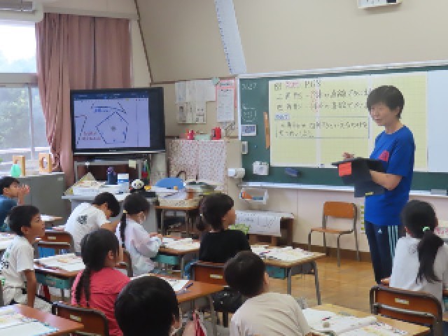 2年生の算数では、「三角形と四角形」の学習に取り組んでいます。今日は、「三角形や四角形と言える理由を説明しよう」をめあてに、自分の言葉で形の特徴を考え、理由を伝え合いました。子どもたちは、辺の数や形の特徴に注目しながら、一生懸命説明していました。