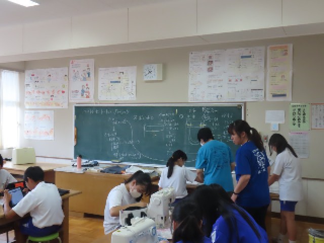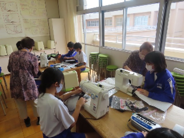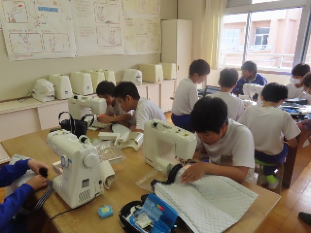6年生の家庭科では、ミシンを使ってトートバッグの製作に取り組んでいます。すでに完成した児童もおり、まもなく全員が仕上がりそうです。製作の過程では、ボランティアの方々に最後まで丁寧にご支援いただきました。本当にありがとうございました。