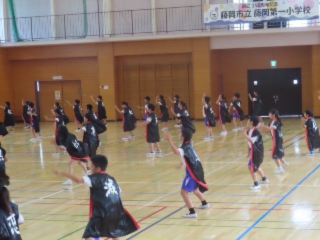 5年生は体育の時間に、運動会に向けた練習に取り組んでいます。今日は体育館で法被を着て、ソーラン節の練習を行っていました。力強く、迫力のある踊りがとてもかっこよかったです。