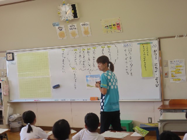 1年生の国語では、物語文「くじらぐも」の学習が始まりました。この単元では、「思い浮かべながら読もう」という学習のめあてを大切にしながら、物語の世界に入り込んで読み進めていきます。子どもたちは登場人物の気持ちを想像したり、自分だったらどうするかを考えたりしながら、気持ちをこめて音読に取り組んでいます。