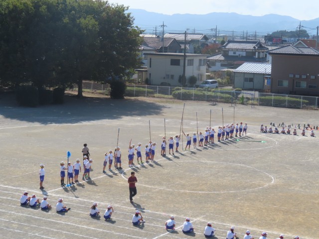 4年生と5年生が合同で、運動会の遊競技の練習に取り組んでいました。力いっぱい競い合い、白熱した練習となっていました。本番に向けて、子どもたちの意気込みが伝わってきました。