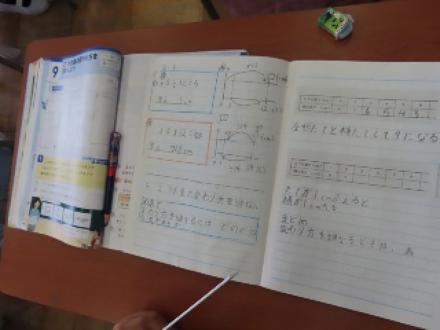 4年生は算数で「2つの量の変わり方を調べよう」の学習に入りました。今日は、表を使って調べることで、2つの量の変化のしかたが分かりやすくなることを学んでいました。子どもたちは、数の増え方や関係に注目しながら、意欲的に取り組んでいました。