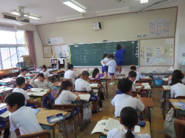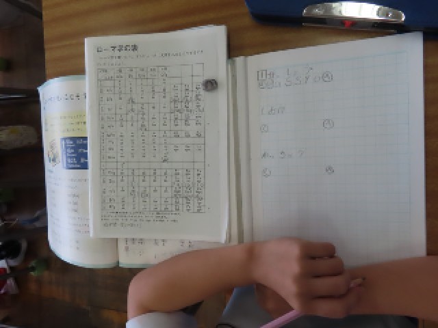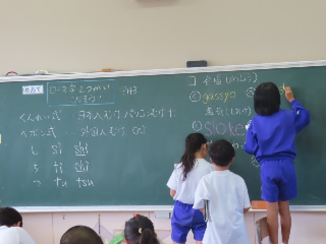 4年生は国語で「ローマ字をつかいこなそう」の学習をしています。今日は、ローマ字表を見ながら、さまざまな言葉をローマ字に直す練習に取り組んでいました。ローマ字のルールを確かめながら、楽しそうに学習していました。
