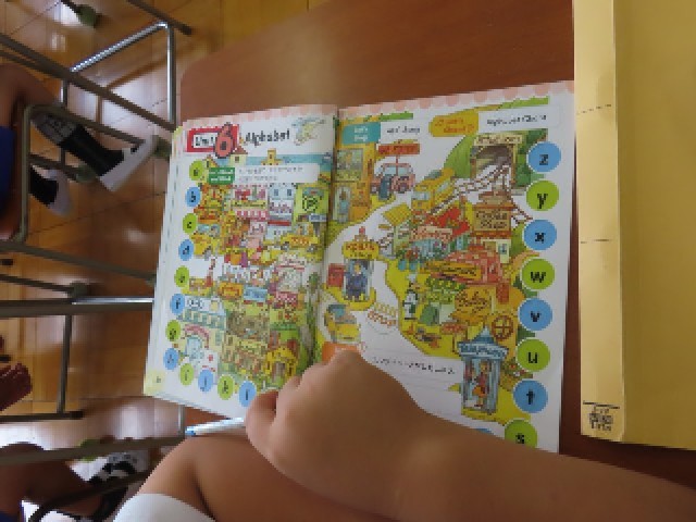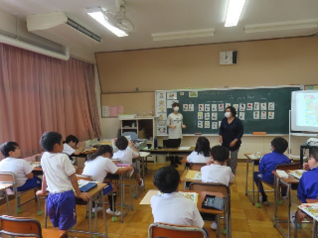 4年生が外国語活動の時間に、アルファベットの学習をしていました。今日は「アルファベットを楽しもう」をめあてに、教科書に載っている英語の言葉を探しながら、楽しく学習に取り組んでいました。