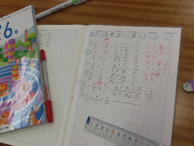 6年生の算数では、「分数でわるわり算」の学習を進めています。今日は、これまでに習った知識を使いながら、さまざまな計算問題に意欲的に取り組んでいました。分数のわり算は少し難しい内容ですが、子どもたちは考え方を整理しながら、丁寧に解いていました。