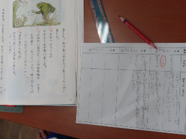 2年生の国語では、物語文「お手紙」の学習を進めています。今日は、「登場人物のしたことや様子を確かめよう」というめあてのもと、物語を読みながら気づいたことをワークシートにまとめていました。子どもたちは、がまくんとかえるくんの行動や気持ちの変化に注目しながら、丁寧に学習に取り組んでいました。