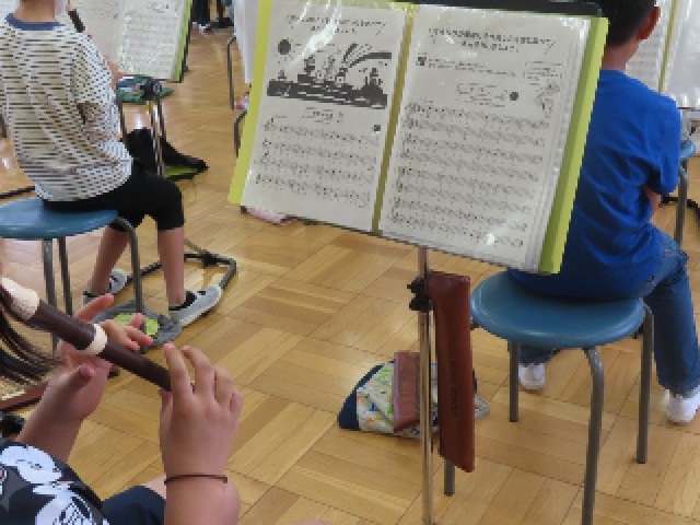 4年生の音楽では、リコーダーの練習に取り組んでいます。今日は「サミングで高音をきれいに出そう」というめあてのもと、「オーラリー」の演奏を行いました。子どもたちは指使いや息の使い方に気をつけながら、一生懸命に練習していました。