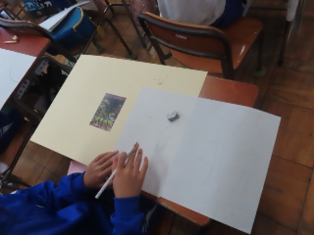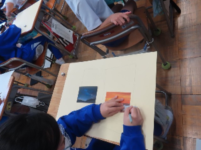 5年生は図工の時間に、「絵を描く会」に向けた作品制作に取り組んでいます。今年のテーマは「まだ見ぬ世界」です。今日は、本番用の画用紙に下描きを行い、思い思いのイメージを丁寧に描き始めていました。子どもたちの豊かな発想と表現力がどのような形になるのか、完成がとても楽しみです。