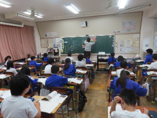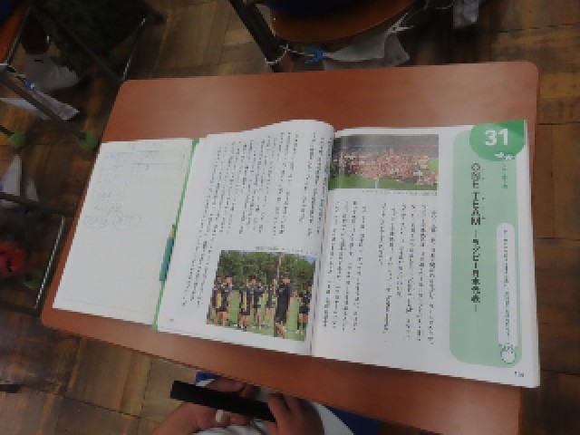 4年生の道徳では、「One Team ― ラグビー日本代表 ―」を題材に、学習をしていました。今日は、チームが一つにまとまるために大切なことは何かについて、みんなで考えました。実際のラグビー日本代表の姿を通して、仲間を思いやる心や、力を合わせることの大切さに気づく姿が見られました。