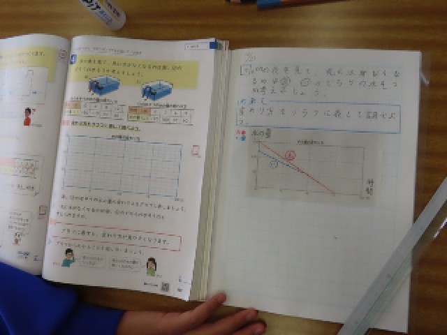 4年生の算数では、「変わり方」の学習に取り組んでいます。今日は、変わり方の様子をグラフに表すことをめあてに学習を進めました。数字の変化を視覚的にとらえる活動を通して、児童たちは関係性を楽しく学んでいました。