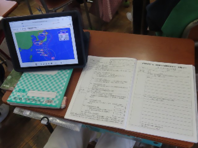 5年生の理科では、「台風と天気の変化」について学習しています。本日は学習のまとめとして、「天気予報のように台風や災害の情報を伝えよう」というめあてで活動に取り組みました。児童たちは、これまでに学んだことを活かしながら、台風の動きや天気の変化について分かりやすく伝える工夫をしていました。