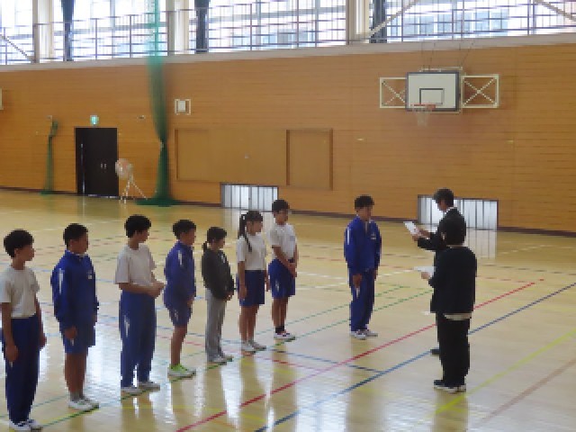 10月21日(火)表彰 公開日 2025/10/21 更新日 2025/10/21 できごと(2025) 本日の昼休みに、市の陸上教室記録会で入賞した子どもたちの表彰式が行われました。この中からは、県大会に出場する子どももいます。入賞した皆さん、おめでとうございます。