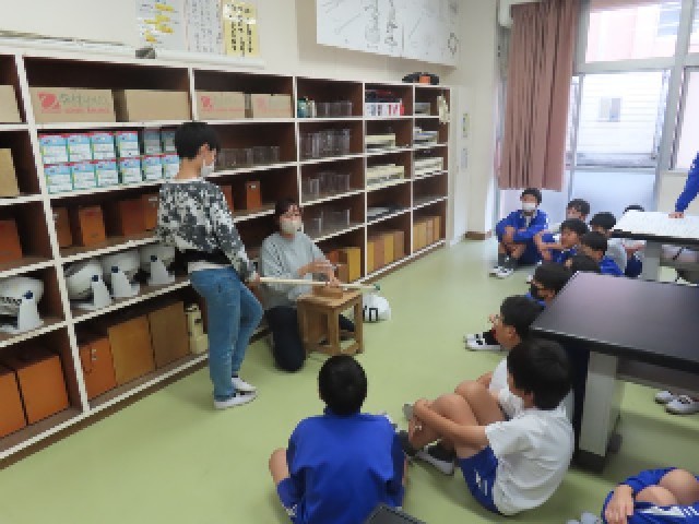 6年生では理科で「てこのはたらき」について学習しています。今日は、棒を使っておもりを持ち上げる実験を行い、実際の体験を通しててこの仕組みや働きについて考えました。子どもたちは、おもりの重さや支点の位置によって持ち上げやすさが変わることに気づき、意欲的に学習に取り組んでいました。