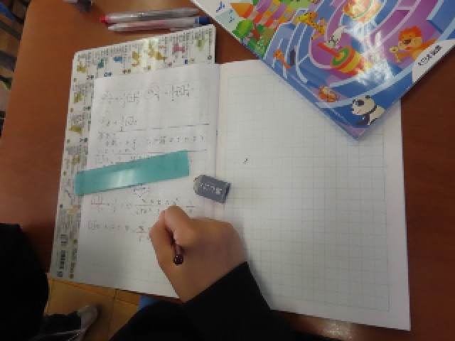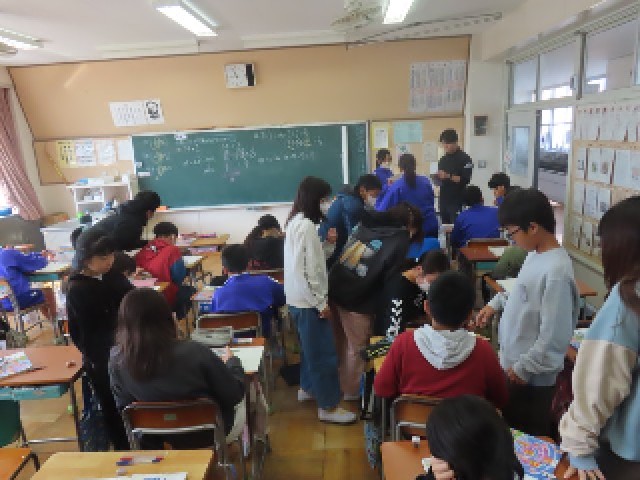 6年生の算数では、「分数のわり算」の学習を進めています。今日は「小数が混ざった計算は、どのようにしたらよいか」をめあてに取り組みました。自分の考えを友達と交流しながら、さまざまな考え方に気づく姿が見られました。