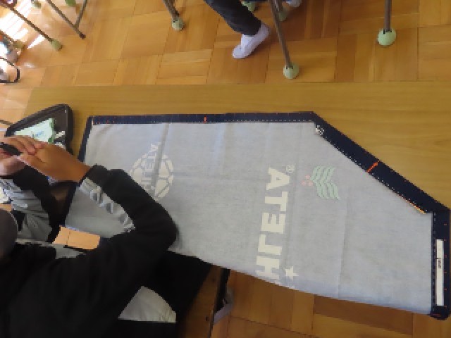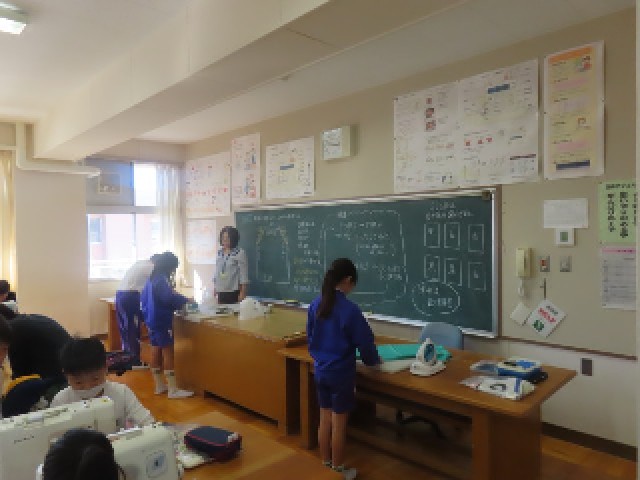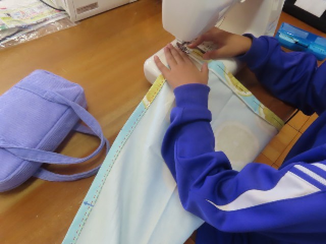 5年生は家庭科でエプロンの製作に取り組んでいます。作業もだいぶ進み、ミシンがけももうすぐ終わりそうです。子どもたちは、布の柄や色を工夫しながら、自分だけのエプロンを仕上げることを楽しんでいます。