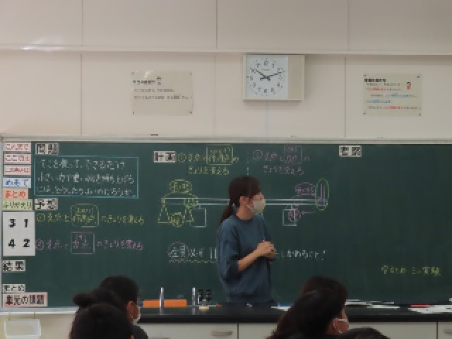 6年生の理科では、「てこのはたらき」について学習しています。今日は、てこを使ってできるだけ小さな力でおもりを持ち上げるには、支点と力点をどの位置にするとよいかを考えました。子どもたちは自分の予想をもとに実験を行い、結果を確かめながらてこの仕組みへの理解を深めていました。