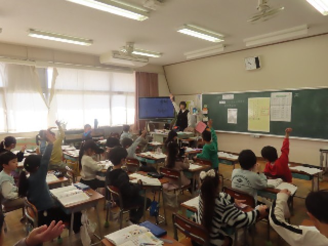 2年生の算数では、「かけ算」の学習を進めています。学習もどんどん進み、今日は3の段を練習していました。子どもたちはリズムよく声をそろえて唱えながら、かけ算のきまりを楽しく覚えていました。