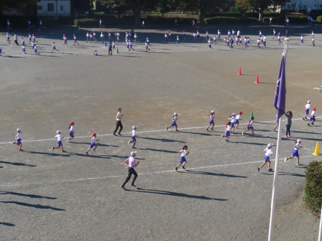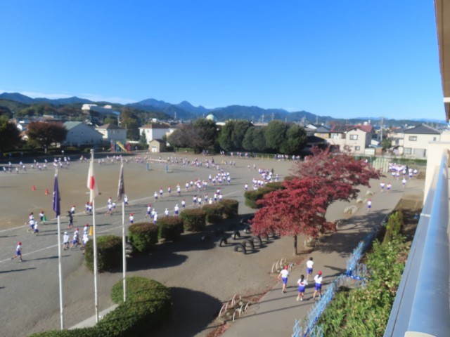 11月になりました。朝夕の空気もひんやりし、体を動かすのに気持ちのよい季節です。今月は全校で持久走に取り組みます。今朝の体育集会では、持久走の取り組み方についての話があり、そのあと学年ブロックごとに走りました。これからは20分休みにも練習を続けていきます。自分の体力を高め、最後まであきらめずに走りきる力をつけてほしいです。