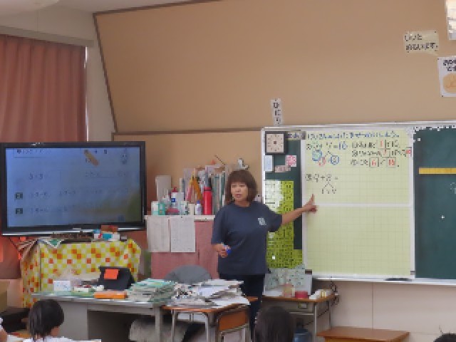 1年生は算数で「たしざん」の学習をしています。今日は、答えが二けたになるたしざんについて学習していました。たされる数を10と残りに分けて考える方法を使いながら、一生懸命に問題に取り組んでいました。子どもたちは考え方を確かめながら、少しずつ理解を深めていました。