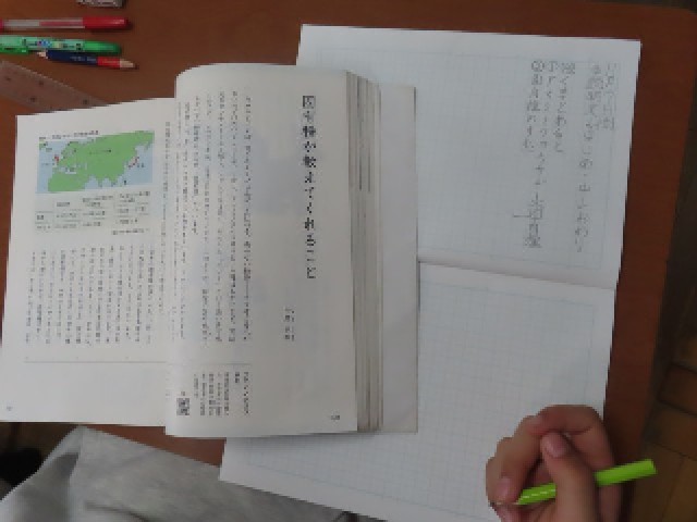 5年生は国語で、説明文「固有種が教えてくれること」の学習に取り組んでいます。今日は「文章の構成を考えて、大まかな内容を捉えよう」をめあてに、段落のつながりを意識しながら、長い文章を簡潔にまとめる学習を行いました。