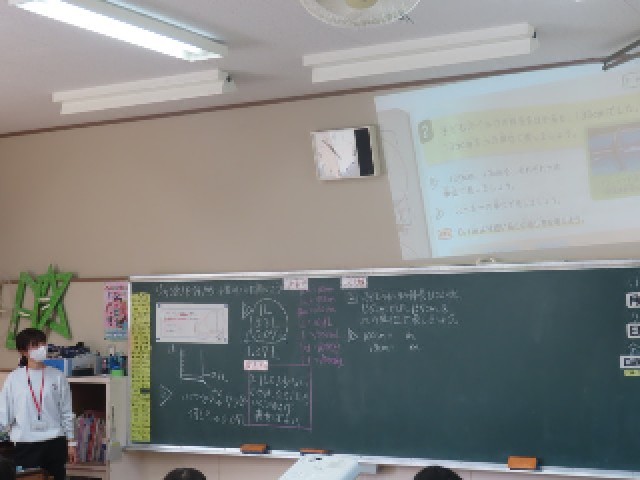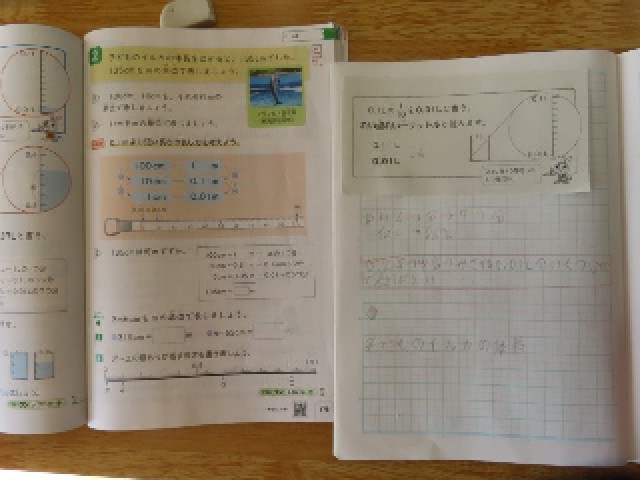 4年生は算数で「小数」の学習を進めています。今日は「0.1mより短い長さの表し方を考えよう」をめあてに、135cmをどのように表すかについて考えました。子どもたちは、メートルやセンチメートルの関係を確認しながら、小数を使って正しく表す方法を工夫していました。