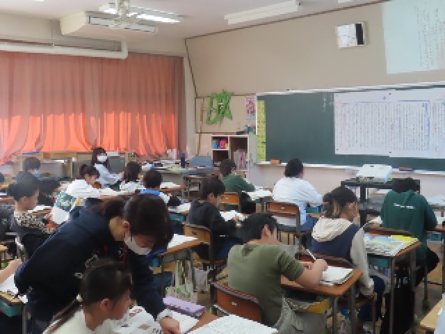 4年生の国語では、説明文「未来につなぐ工芸品」の学習を進めていました。この日は、単元のめあてである本文の要約に取り組みました。児童は、文章の要点を整理しながら、自分の言葉でまとめる力を養っていました。