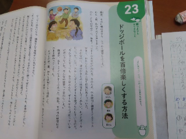 5年生は道徳の学習に取り組んでいました。この日は、「ドッチボールを百倍楽しくする方法」の題材を用い、「人とよい人間関係をつくるにはどうしたらよいか」をめあてに学習しました。児童は、友達と考えを交流しながら、自分たちにできる工夫や心がけについて理解を深めていました。