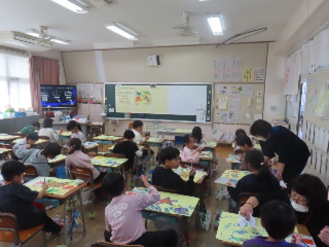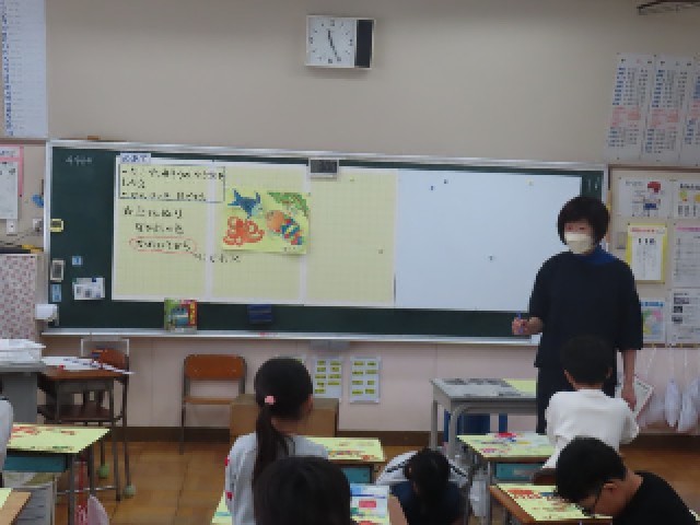 2年生が「絵を描く会」に向けて絵を制作していました。下書きした魚に絵の具で色をつけ、カラフルで楽しそうな作品に仕上げていました。どの子も集中して取り組み、素敵な絵ができあがりつつあります。