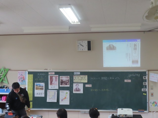4年生は社会科で高山社について学習しています。今日は、これまで調べてきたことを新聞にまとめる学習を行いました。子どもたちは、高山社の工夫や人々の努力を思い出しながら、伝えたいことを一生懸命文章にしていました。