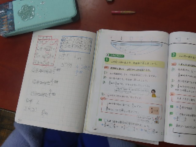 3年生は算数で「分数」の学習に取り組んでいます。本日は、1より大きな分数の表し方について学習しました。児童たちは数直線を活用しながら、分数の位置や大きさを確かめ、自分の考えをしっかりとまとめていました。