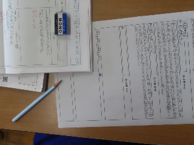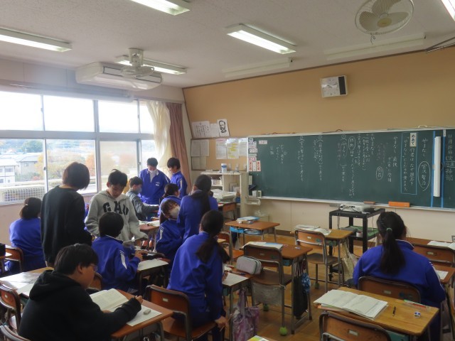 6年生の国語では、物語文「やまなし」の学習を進めています。学習もいよいよ大詰めとなり、今日は「作者はなぜ題名を『やまなし』にしたのだろう」をめあてに、児童一人ひとりが自分の考えを深めながら、友達と意見を交わしていました。教室には、さまざまな視点からの気づきや考えが広がっていました。